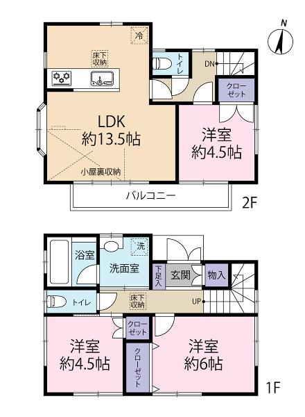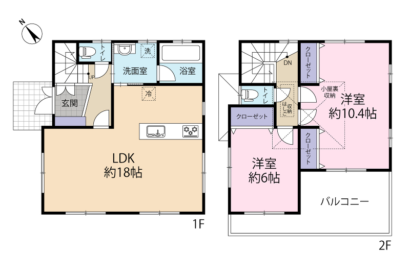 ■全居室6帖以上の広さを確保したゆとりの2LDK(^^)/■2階10.4帖洋室は2ドア1ルーム仕様!ライフステージの変化に合わせ3LDKへの変更可能です!■南東...