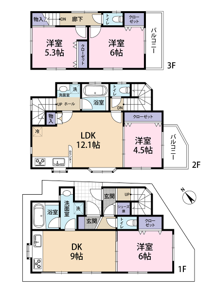 ■2013年8月築の3階建て3DK+1DK!二世帯住宅におすすめ!■玄関ドアからセパレートのプライバシーを確保した間取り♪■賃貸併用住宅としてもご利用頂けます■...